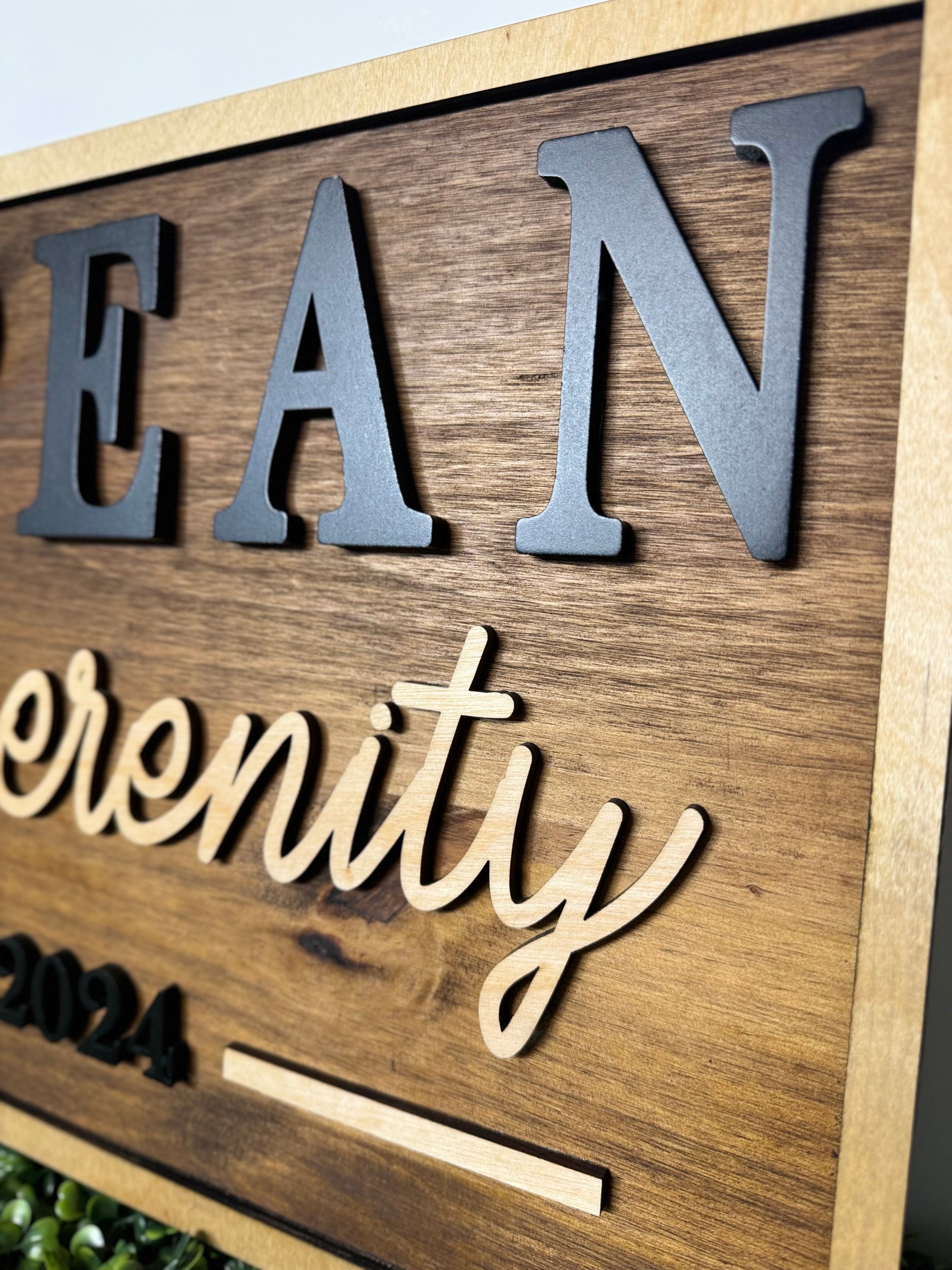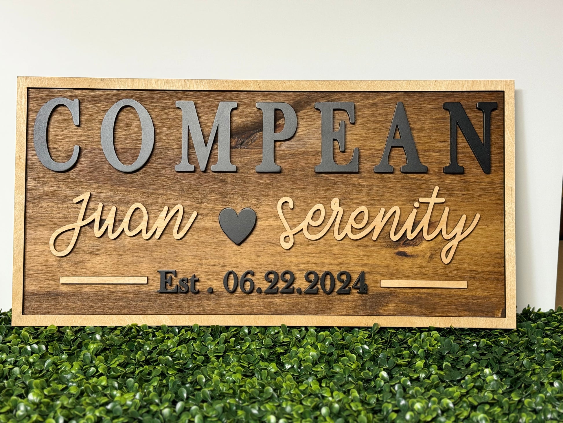 You may purchase a custom order spot for $50.00. We will then email you a custom order form. Please fill out and email to us at sawdustandgracewtx@gmail.com. Within 3-4 days you will receive a digital mock-up via email. We ask that you return your approval of the mock-up you would like to purchase within 3 days. We will then send you an invoice for the balance ($50 deposit will be applied). Upon approval we will send you an invoice for the remaining balance. Once invoice is paid in full, we will begin production. Should you decide not to proceed the $50.00 deposit is non-refundable as it goes towards our time to design. No changes can be made after production begins. There is approximately a 2-4 week turnaround time once agreement is submitted to us.
