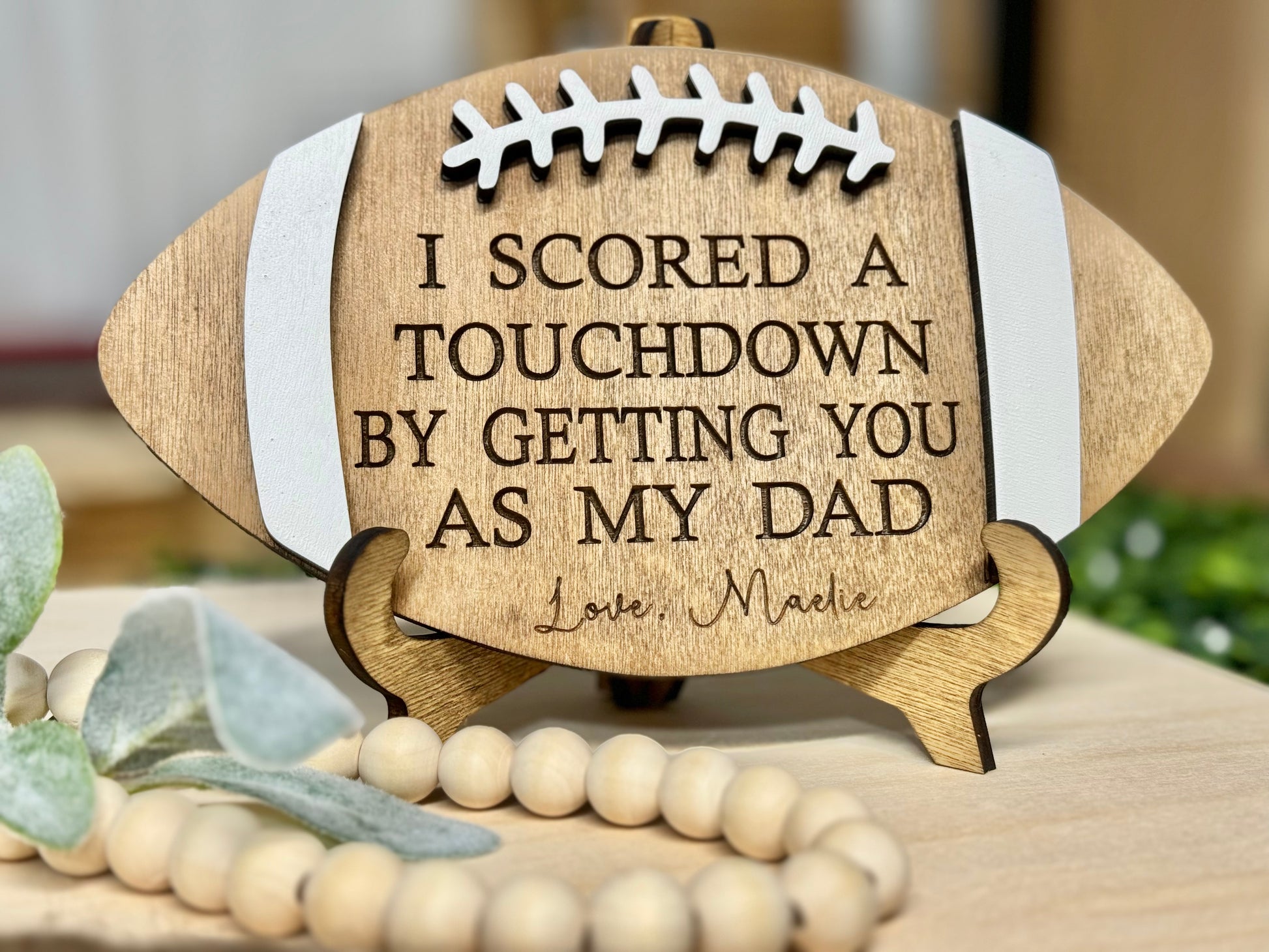 football plaque features laser engraving & 3D Laser cut design. Personalize with children’s names