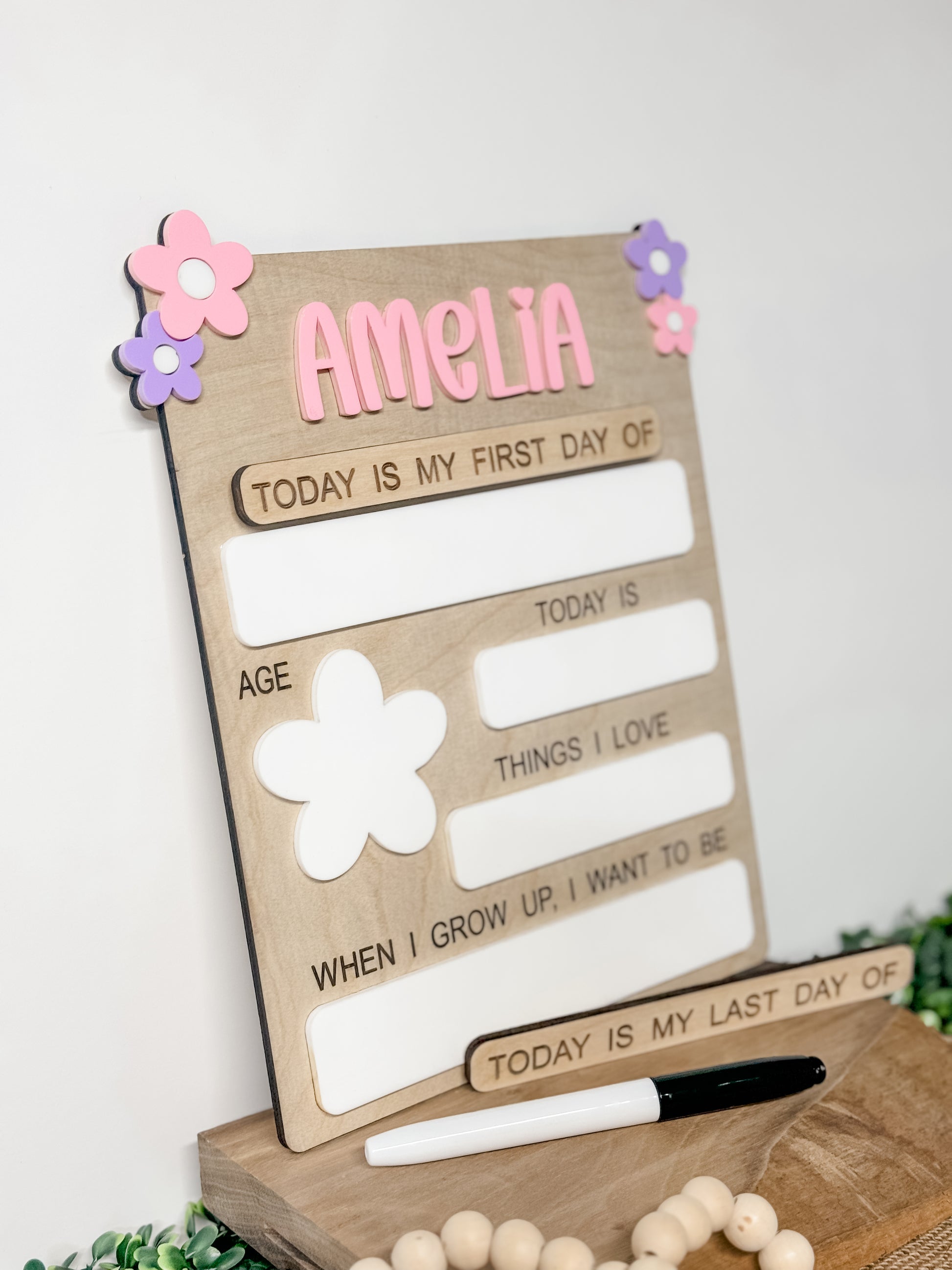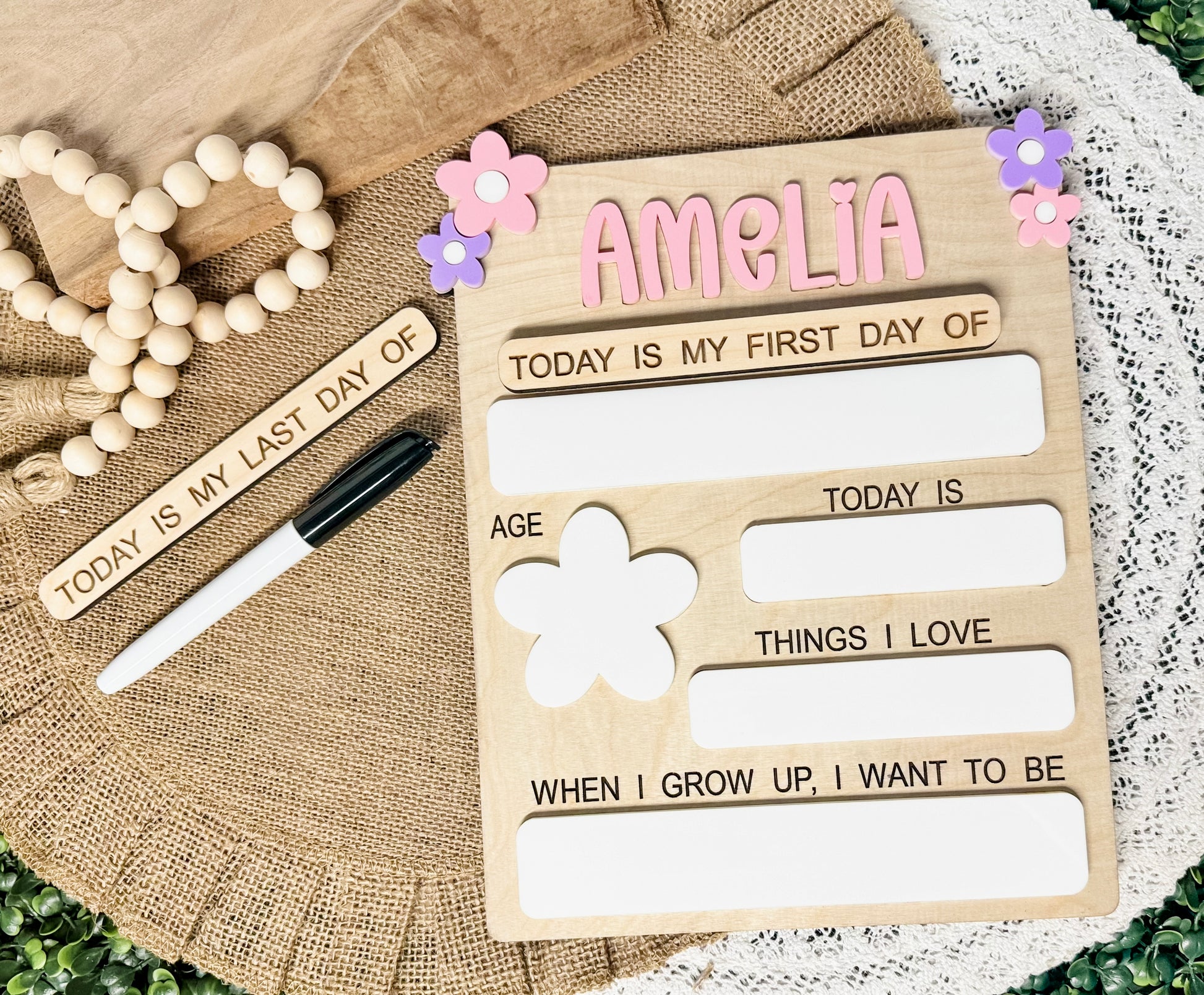 These personalized back to school boards feature several areas that can be written on with a dry erase marker and erased to be used again.