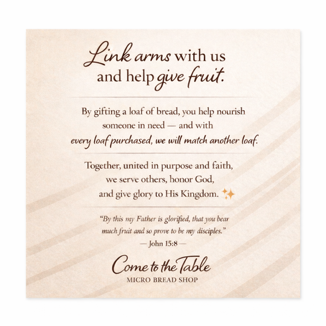 By gifting a loaf of bread (Original Sourdough), you help nourish someone in need - and with every loaf purchased, we will match another loaf.
